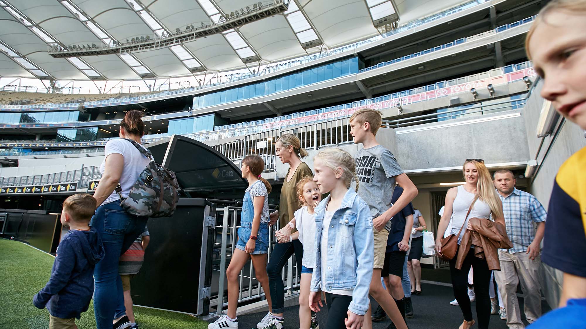 Bring your family and friends for an exclusive behind the scenes tour of this stunning state-of-the-art Stadium. Australia’s newest and most advanced sporting stadium, The Optus Stadium in Perth on the banks of the Swan River is now open for guided tours. Go behind the scenes and walk the inner sanctum to see where some of your favourite sports stars hang out in the change rooms, and then scale the stairs to enjoy a beautiful city view of Perth City and the Swan River from the Sky View Lounge. The multi-purpose venue plays host to AFL, Cricket, Soccer, Rugby and even concerts and this tour will take you to exclusive areas not available to the public.